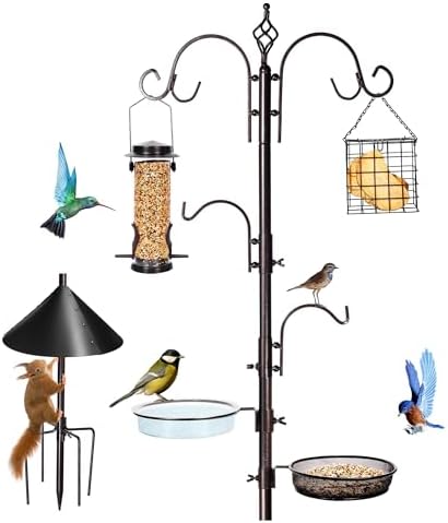 View full details6-Hook Bird Feeding Station Kit, 94 Inch Heavy Duty Bird Feeder Stand Pole for Outdoors Hanging with 4 Feeders, Wide Metal Squirrel Baffle, Attracting Wild Birds
