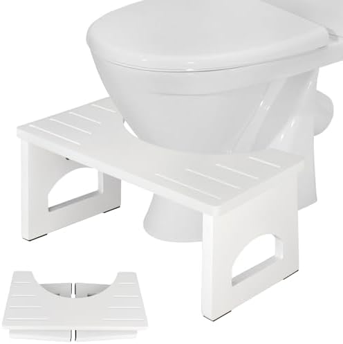 View full detailsFoldable Toilet Stool, 7 Inches Bamboo Toilet Stool Squat for Adults, Collapsible Poop Stool for Bathroom, Potty Step Stool with Non-Slip Strip (White)