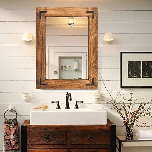 View full detailsYOSHOOT Rustic Wooden Framed Wall Mirror, Natural Wood Bathroom Vanity Mirror for Farmhouse Decor, Vertical or Horizontal Hanging, 32" x 24", Brown