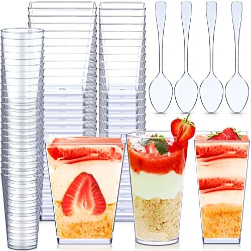 View full detailsZhehao 300 Packs 3 oz 5.6 oz Mini Dessert Cups with Spoons Plastic Parfait Appetizer Shooter Yogurt Cups Disposable Clear Square Dessert Serving Containers(Simple Style,Clear)