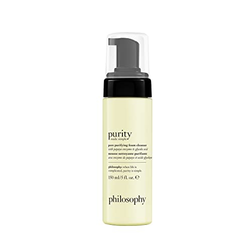 philosophy purity made simple pore purifying foaming facial cleanser - with papaya enzyme & glycolic acid - face wash removes dirt and impurities from pores - 5 fl oz
