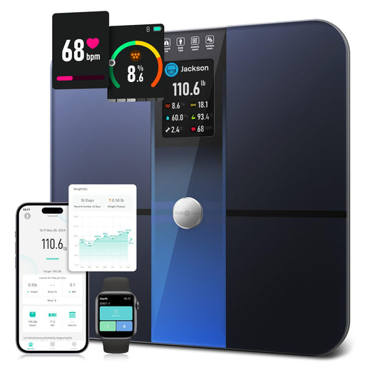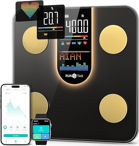 View full detailsRunstar Smart Scale for Body Weight and Fat Percentage FSA HSA Eligible, 3.5" TFT Color Display High Precision Digital Bathroom Scale BMI Heart Rate 22 Body Composition Analyzer Sync with Fitness App