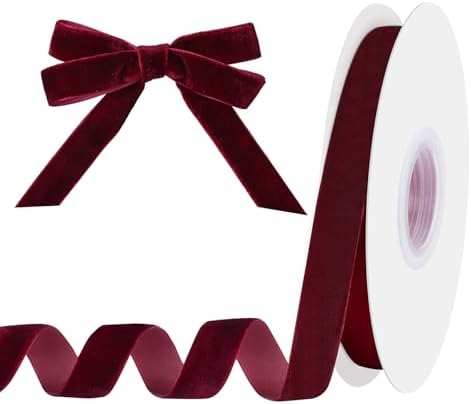 View full detailsBurgundy Velvet Ribbon 5/8 Inch X 15 Yards Dark Red Velvet Ribbon Christmas Ribbons for Gift Wrapping Christmas Tree Wreath Bows Thanksgiving Xmas Decorations
