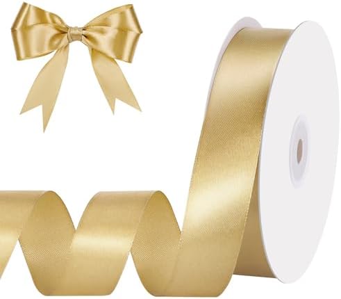 View full detailsGold Ribbon 1 Inch 50 Yards Gold Satin Ribbon Gift Bows for Wedding Party Holiday Christmas Decorations Gift Wrapping Ribbons Crafts Hair Bows