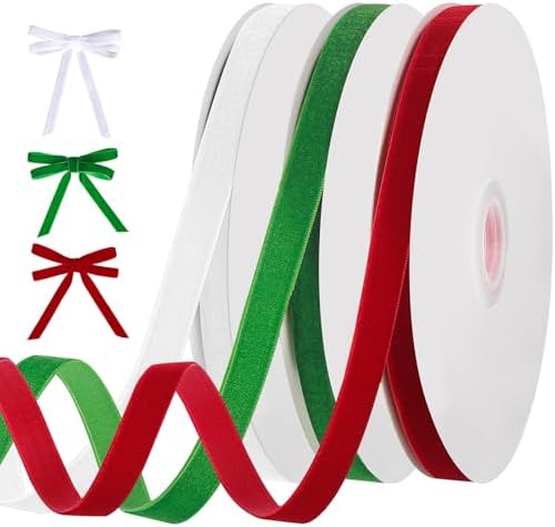 View full details30 Yards Christmas Velvet Ribbon 3/8 Inch Vintage Thin Ribbons Velvet Bows for Choker Gift Wrapping Door Garland Christmas Tree Decorations (3 Rolls * 10Yd)