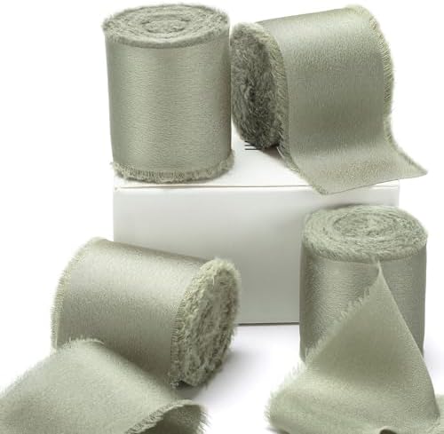 View full details4 Rolls Sage Green Ribbon 1.5" x 20 Yard Handmade Frayed Light Green Silk Satin Chiffon Ribbon for Gift Wrapping Flower Bouquet Wedding Invitation Christmas