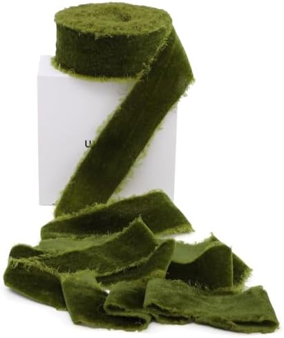 View full detailsGreen Velvet Ribbon 1 1/2 Inch 5 Yards Moss Green Frayed Edge Velvet Ribbon for Christmas Tree Gift Wrapping Flower Bouquet Baby Shower Christmas Decorations