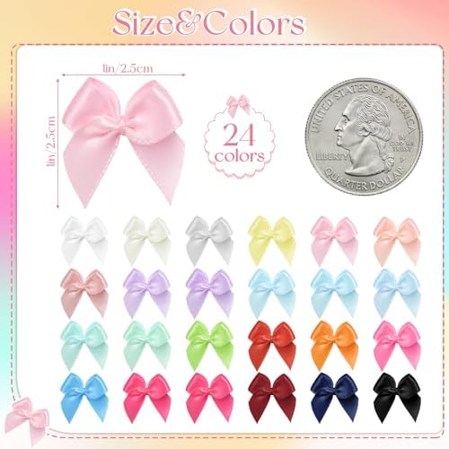 View full details240PCS Mini Bows 1" Colorful Satin Ribbon for Crafts Small Bows for DIY Sewing Hair Accessories Clothespins Halloween Party Christmas Stocking Stuffers Wedding Gift Box Ornament